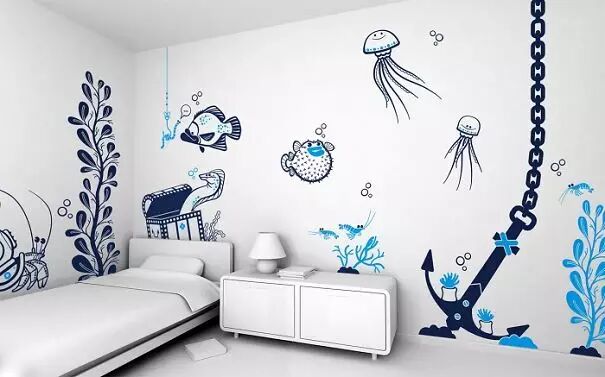 喜欢大海的人就把卧室变成海洋馆好啦。