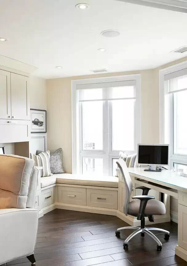 工作完后会很累,不妨在工作区域里再开辟一个小小的飘窗空间吧,躺着休憩会儿也好。