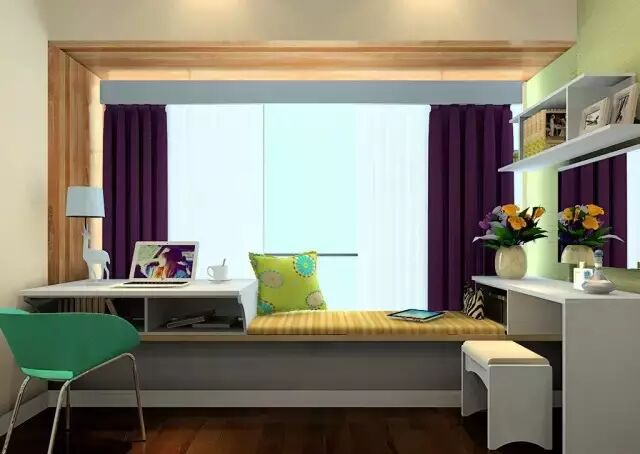 可能你家空间有限,没有开辟单独的书房,但又想有个地方可以安静学习、办公。那么飘窗可以帮到你——你可以发挥你的创造力,利用书桌、榻榻米等单品,把飘窗变成超实用的小书房。